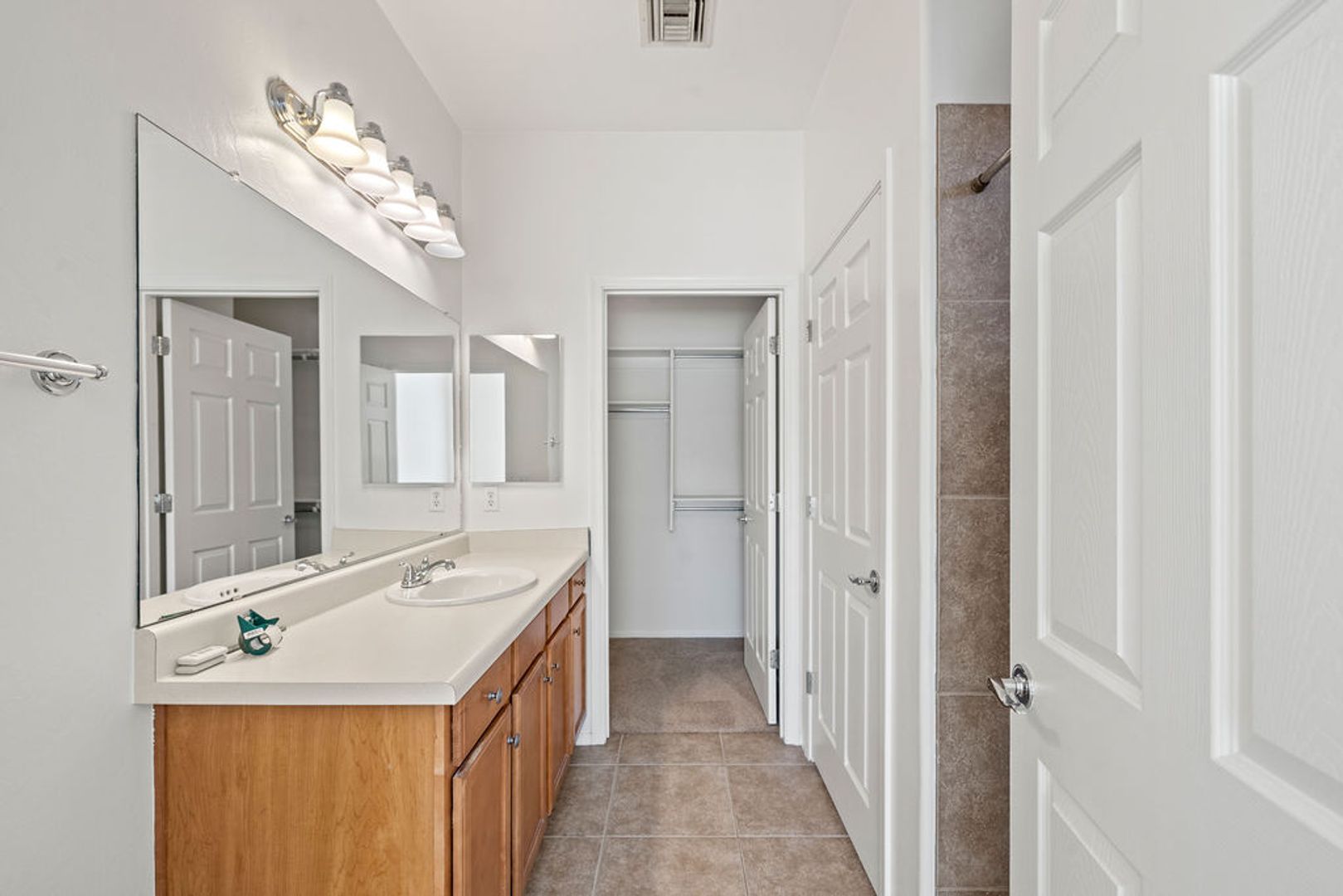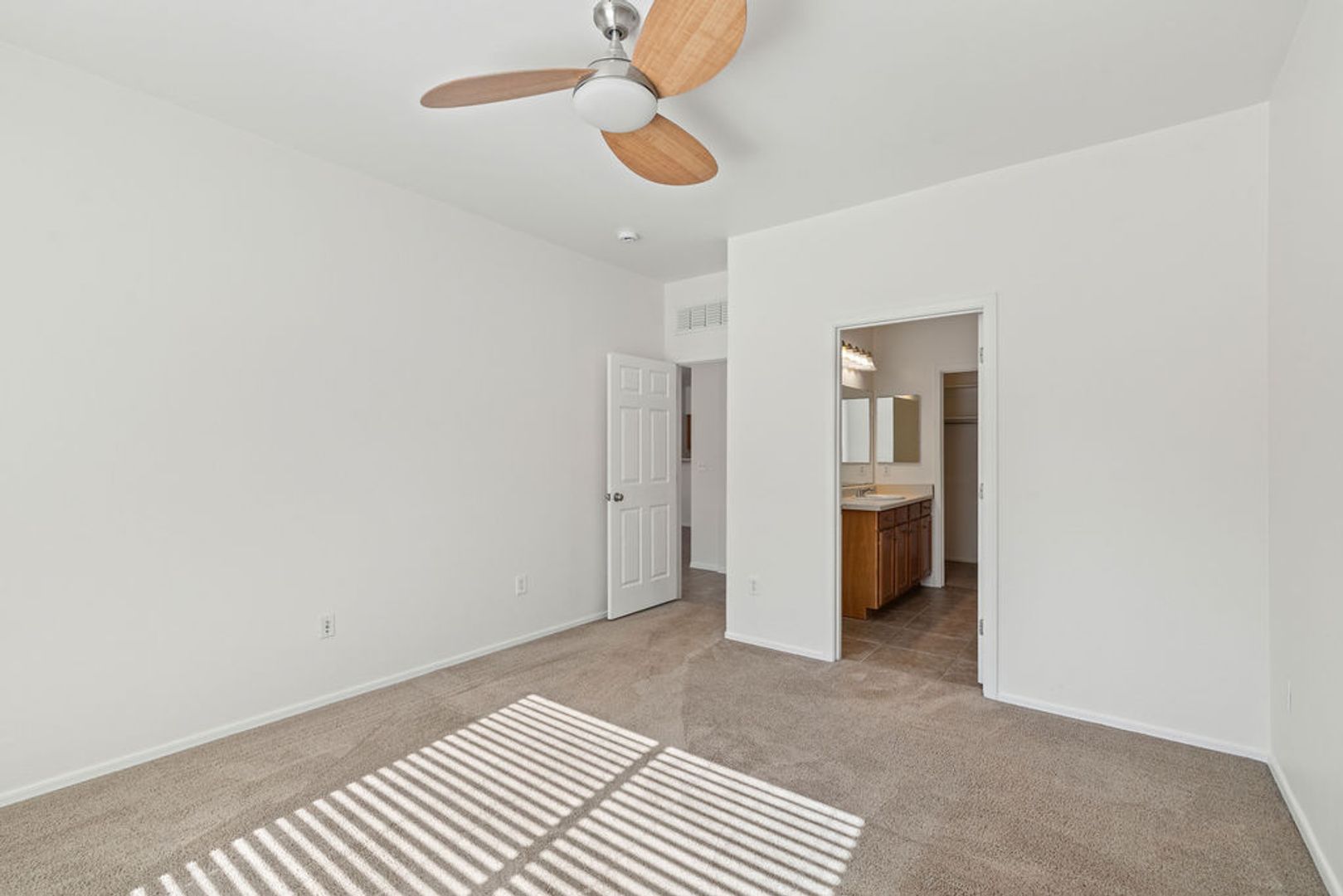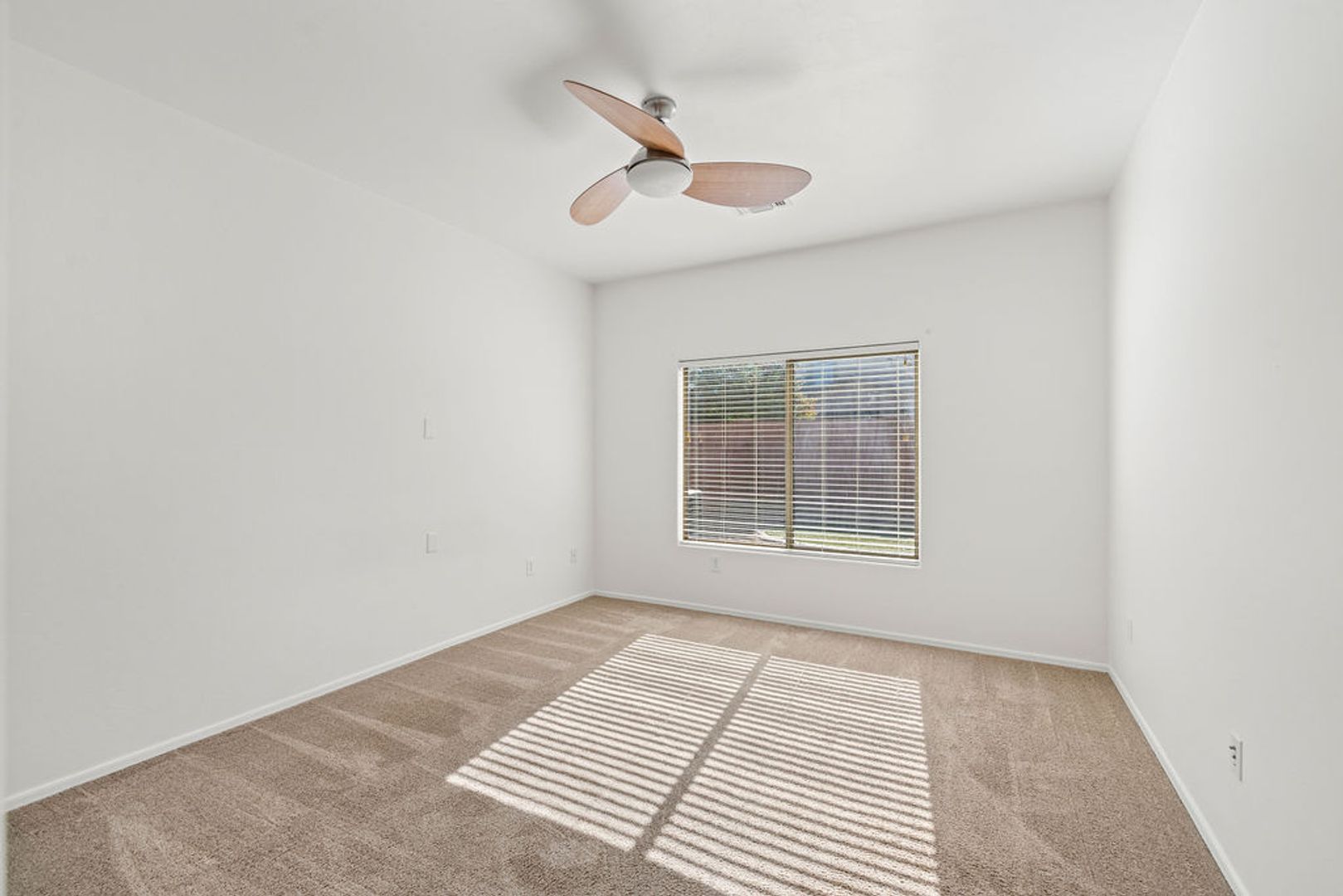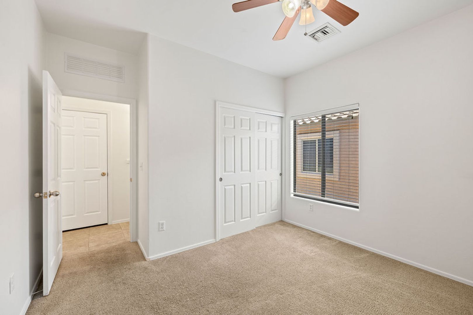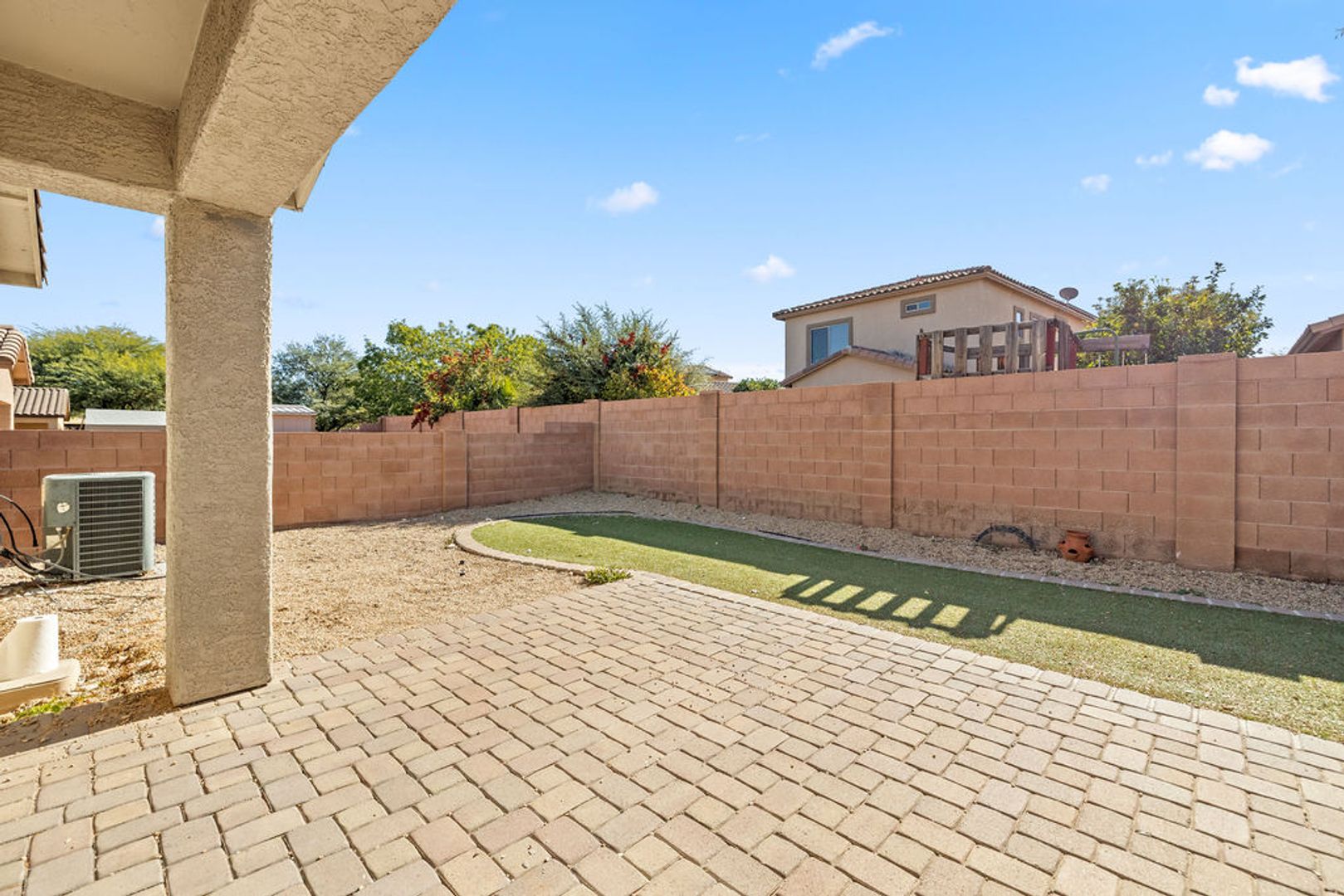 This 3 bed/2 bath home has front paver walkway, mature vegetation, private entry, FRESH interior paint throughout, kitchen has tons of cabinetry, counter space and stainless steel appliances, NEW kitchen sink & faucet, ceiling fans & window coverings throughout, oversized neutral tile in main living & traffic areas, The split floor plan with spacious bedrooms and primary suite being very large with walk-in closet and walk-in shower. Private backyard with turf, landscape rock, brick pavers and covered patio. Community park with ball fields and basketball court. Award winning Vail School District. Good credit, income and background required. All pets must be preapproved with extra security deposit.