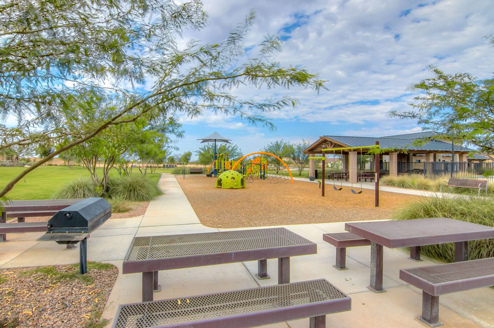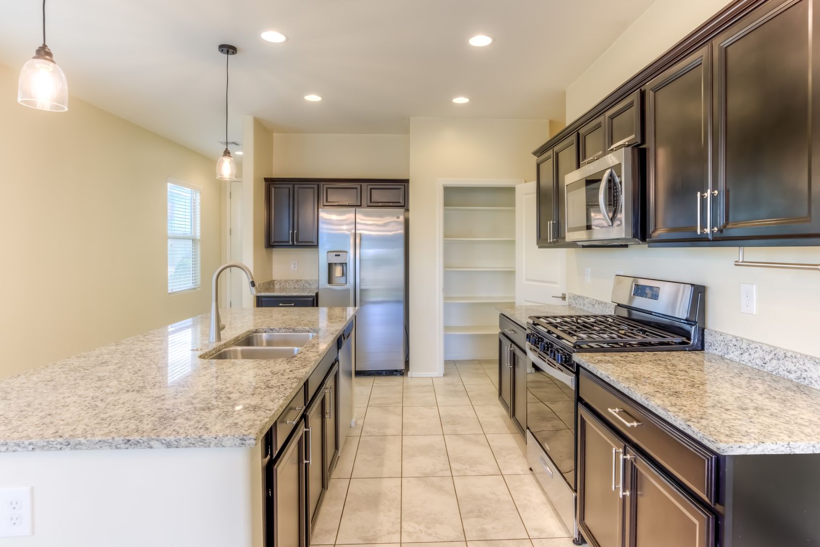 Split bedroom floor plan with large great room and den. The heart of this home is an inviting kitchen with granite countertops, plenty of cabinet space and Island bar and pantry overlooking a spacious great room. High ceilings and ceramic tile throughout with carpet in the bedrooms. The home features three bedrooms, including a beautiful primary suite with private bath and oversized walk-in closet. Community Parks with Playgrounds, Basketball Court and Community Pool. Good Credit, Background and Income Required. All pets must be preapproved with extra security deposit. Please call to see this home.