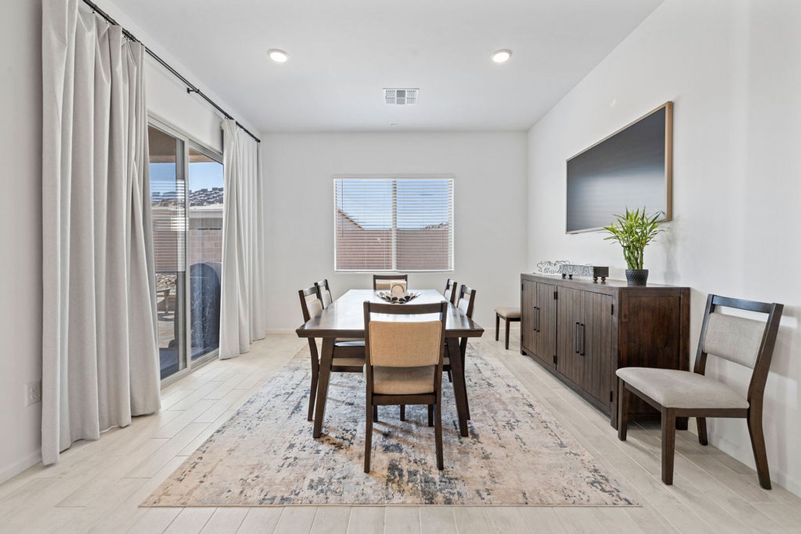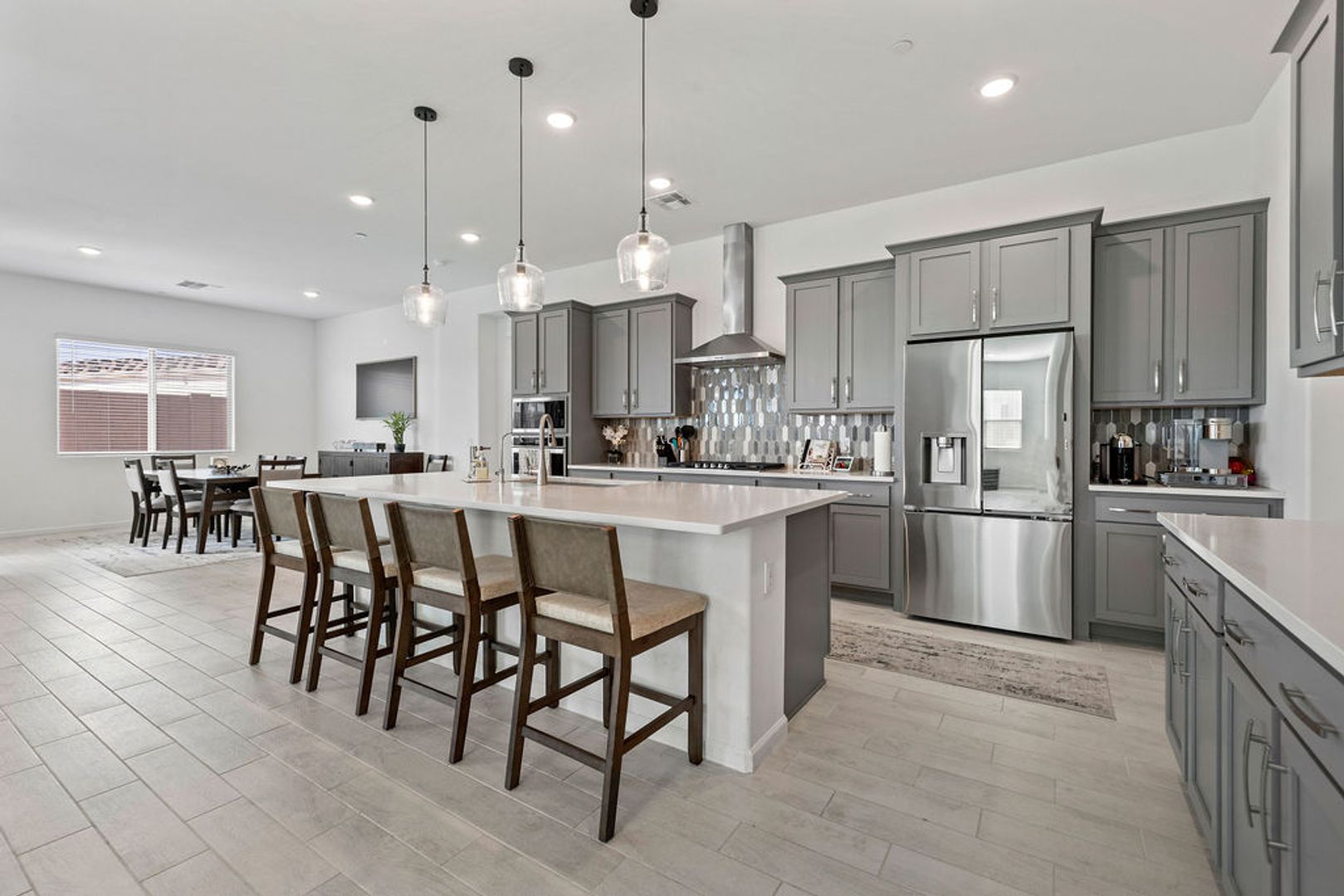 This spacious home offers 3548 sf, 5 comfortable bedrooms and 3.5 modern baths, providing ample room for a large family or guests. The upgraded gourmet kitchen is a chef's delight, featuring a 36'' gas cooktop and stunning granite counters. The living area is filled with natural light from the 12' centered sliding glass door, creating a bright and inviting atmosphere. Contemporary wall fireplace. Teen room is perfect for a game room or study. Large primary bedroom with luxury ensuite with his & her vanities, walk-in shower and walk-in closet. Laundry area is equipped with base cabinets & sink for convenience and functionality with private access to primay ensuite. Also includes water softener and RO System. With a 3-car garage, there is plenty of space for vehicles and storage. Large backyard with fire pit. Optional camera system. All pets must be preapproved with extra security deposit. Owner occupied requires 30 days for tenant to move in.