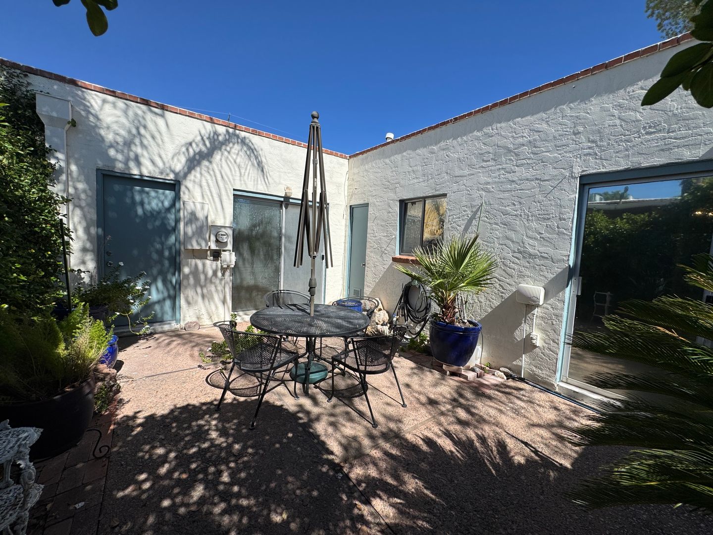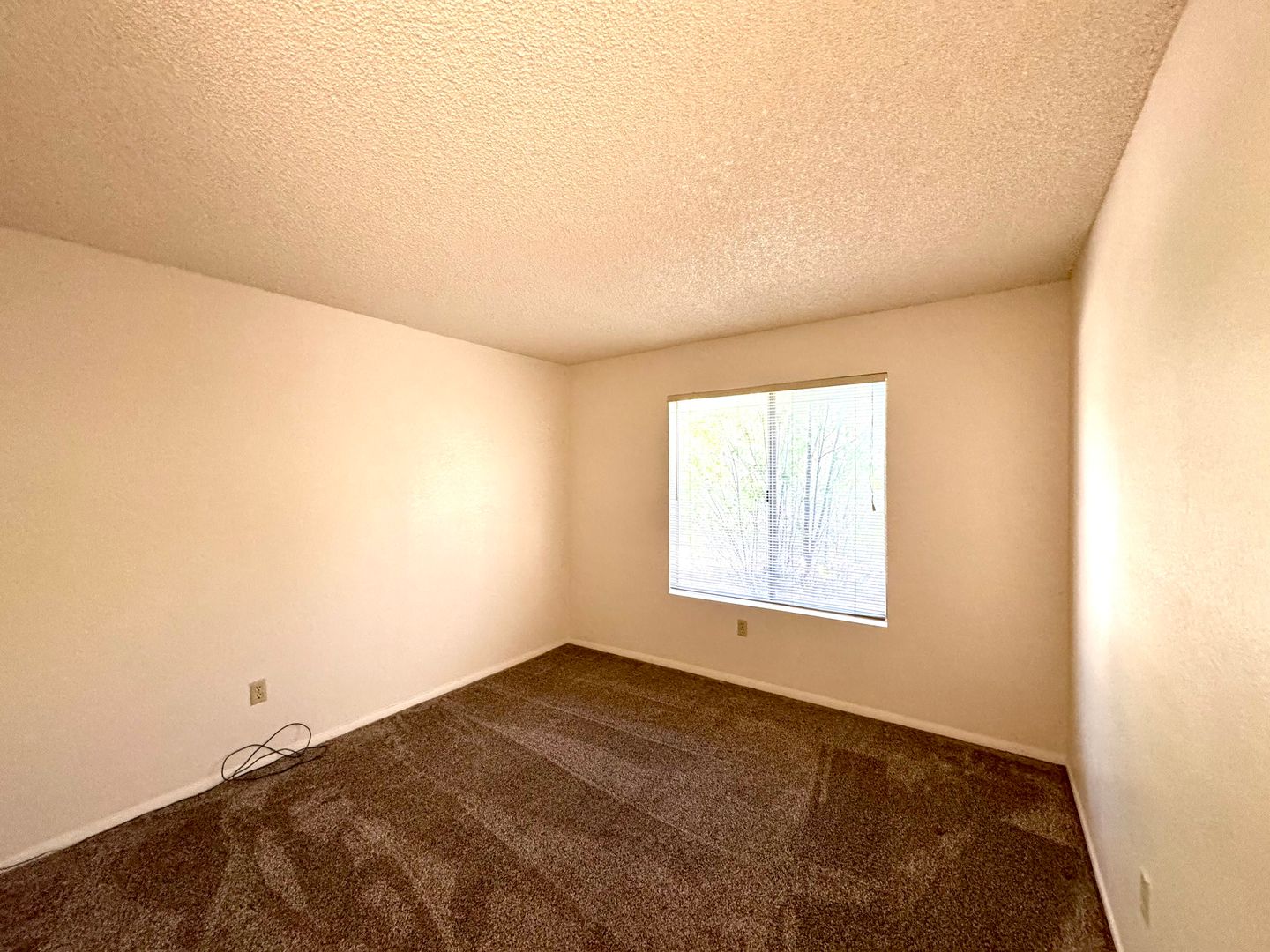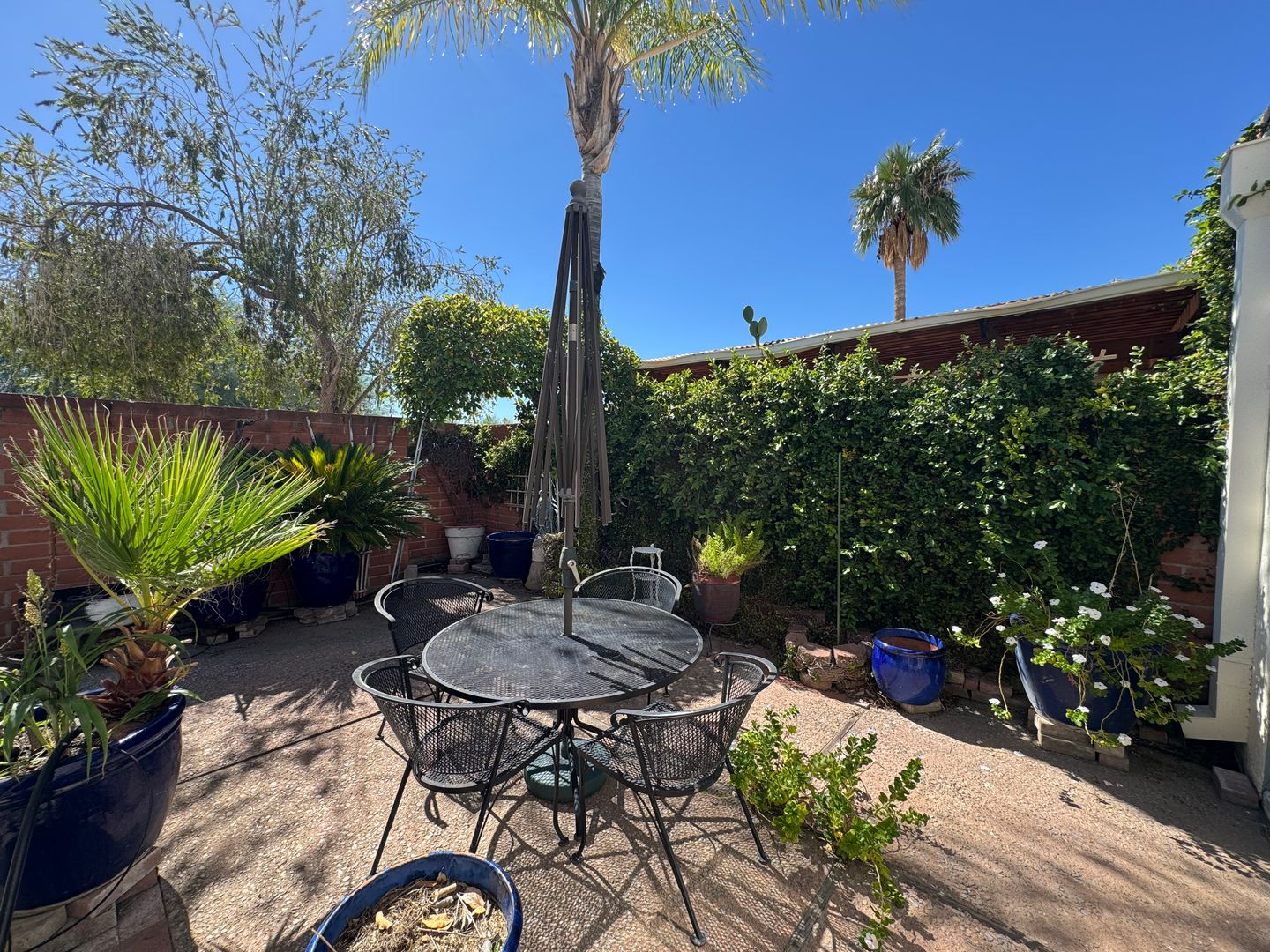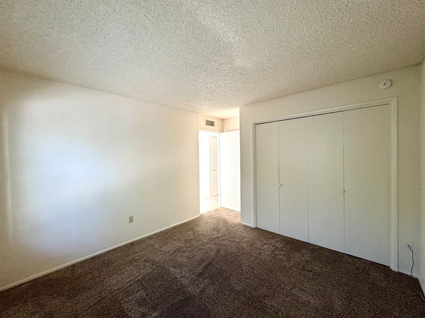Charming townhome in park-like setting, enter the gated courtyard to this lovely home now ready for move-in! Kitchen with pass-thru to dining area. Lots of tile, fresh paint throughout & brand new carpet in primary bedroom. Primary bedroom has a full bath, walk in closet and has private access to the rear patio and laundry room. Perfect end-unit townhome in an ideal location with covered parking space. Community pool. Close to bus lines. 2 minute drive to grocery store, plant nursery, & fast food. 3 minute drive to Lowe's & Walmart. Close to Bike Loop. Good Credit, Background and Income required.