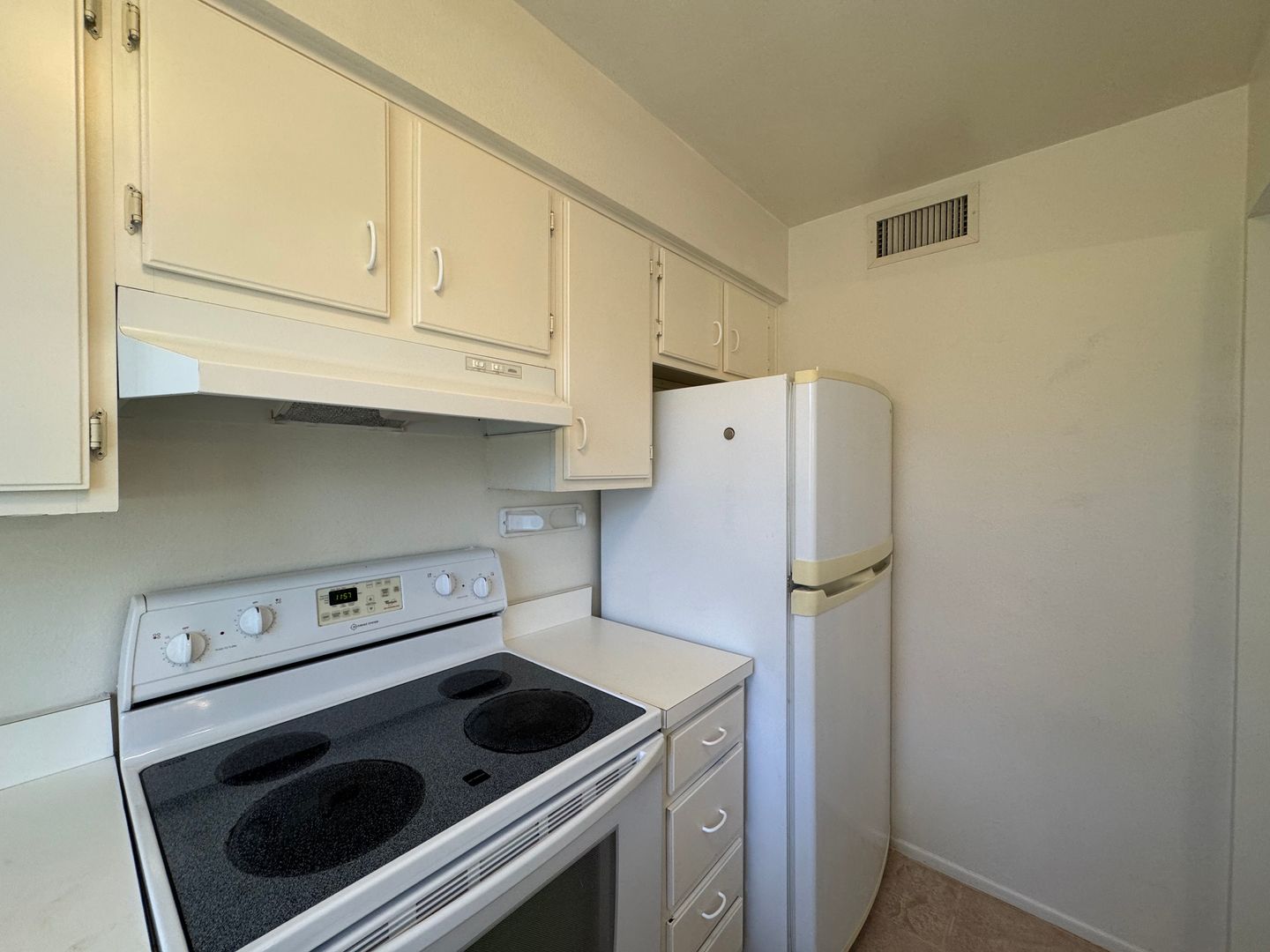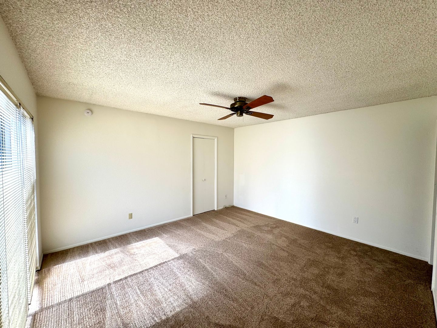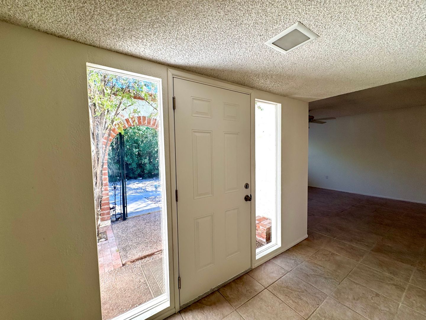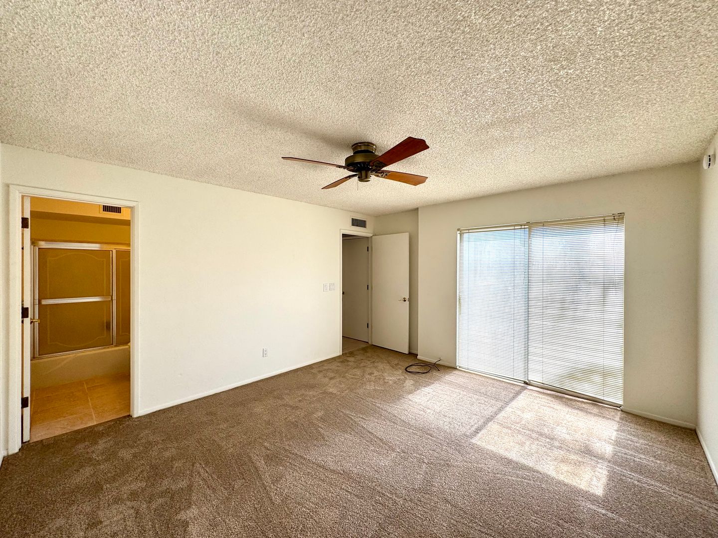 Charming townhome in park-like setting, enter the gated courtyard to this lovely home now ready for move-in! Kitchen with pass-thru to dining area. Lots of tile, fresh paint throughout & brand new carpet in primary bedroom. Primary bedroom has a full bath, walk in closet and has private access to the rear patio and laundry room. Perfect end-unit townhome in an ideal location with covered parking space. Community pool. Close to bus lines. 2 minute drive to grocery store, plant nursery, & fast food. 3 minute drive to Lowe's & Walmart. Close to Bike Loop. Good Credit, Background and Income required.