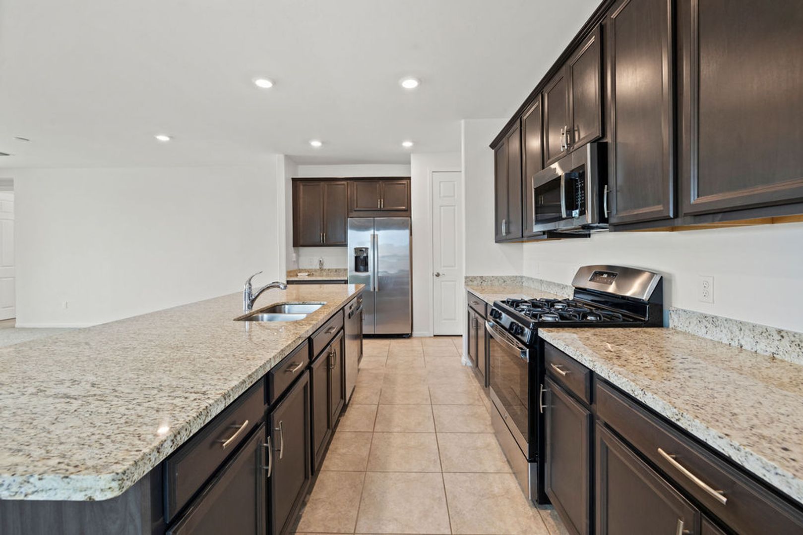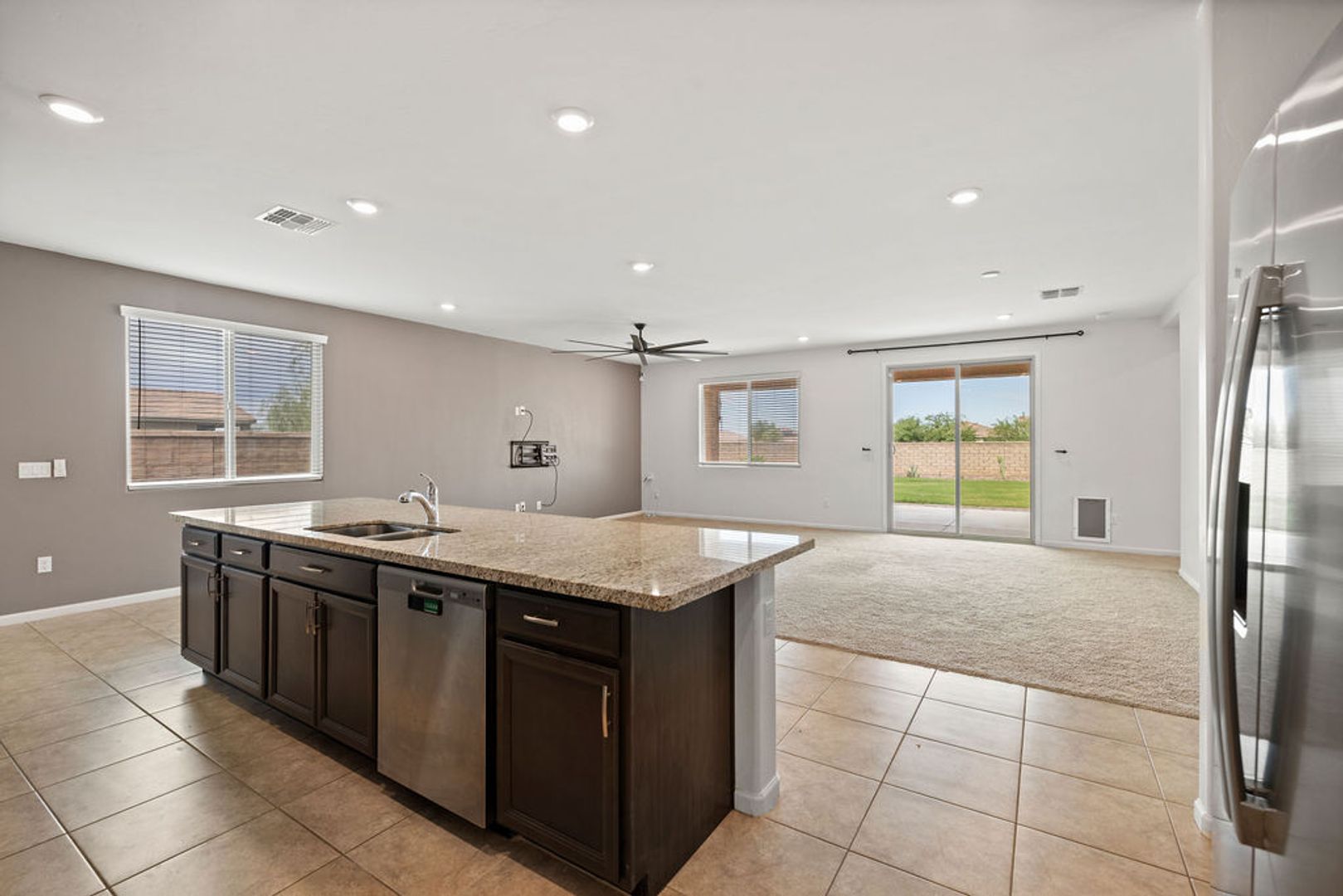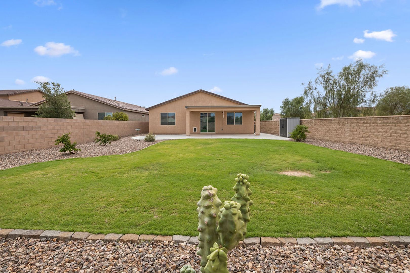 Beautiful 3 Bedroom Home in La Estancia. One-Story Open floor plan with 9 ft Ceilings, Ceiling Fans in all rooms. Gorgeous Contemporary Kitchen with Large Island Bar, Lots of Cabinets, Granite, Gas Range, and Pantry. Large Great Room off Kitchen and Dining Area. Also includes Flex Room off Foyer. Spacious Master suite and Bath with Large Walk-in Shower, Dual Sink Vanity and Oversized Walk-in closet. Covered Rear Patio and Large Backyard with Grass Area. 2-C Garage with epoxy flooring. Community offers and Parks, Playground, Pool and Splash Pad. Award Winning Vail School District. Close to Davis-Monthan AFB. Easy access to I-10 to Airport, Downtown and the U of A. All pet must be preapproved with extra security deposit.
